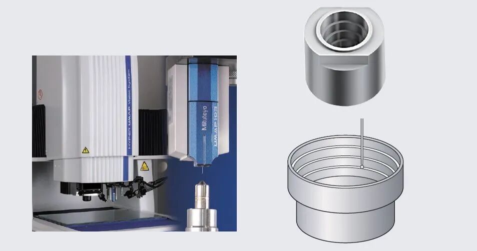可以进行镜筒的直径和同轴度的评估。此测量机所使用的是最小φ15μm的接触式微细测头,也可以进行镜筒壁面的形状评估。同时,因其最小1μN的超低测力,所以不需要怕工件因测量而变形。