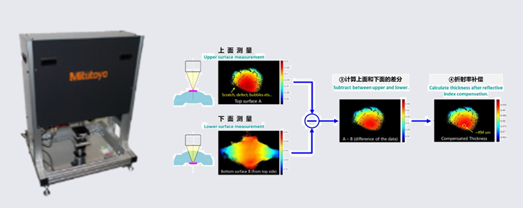 测量镜片厚度一般使用的是接触式测量,但逐渐镜片尺寸变的很小、厚度也随之变很薄,接触式测量导致的变形成为误差的主因,为得到精确测量的结果增加了难度。除此之外,随着镜片大量生产,测量数量也随之增加,如何缩短测量时间也成为一道难题。